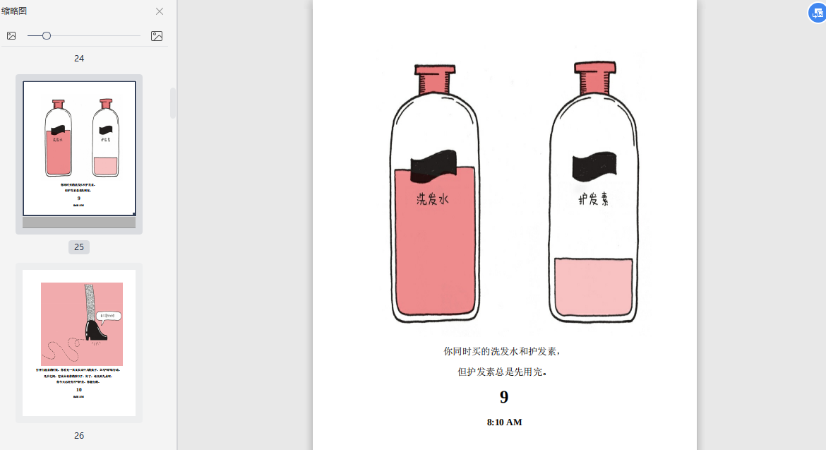 9:04 PM你快速尿完,在這個沒有彼得的地方,看了莫莉的鏡柜,消磨一會兒時